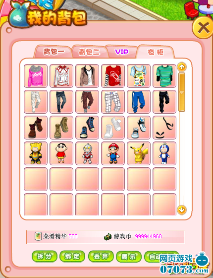 玩家购买的所有角色服饰都将存放在衣柜内,玩家需要更换服饰的时候只需打开“背包”,选择“衣柜”页面就可进行角色的服饰穿着、变更等操作。