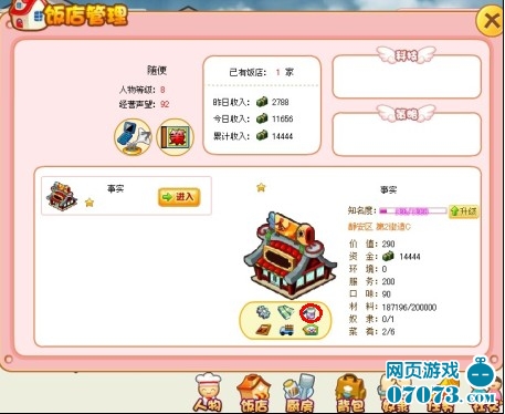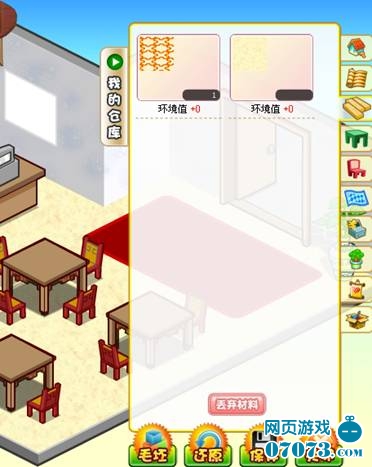 “饭店装潢”是饭店中重要功能之一,通过对饭店的装潢不仅可以展现玩家个性与品味,使用高级的装潢材料更会直接提高饭店“环境值”与“价值”。