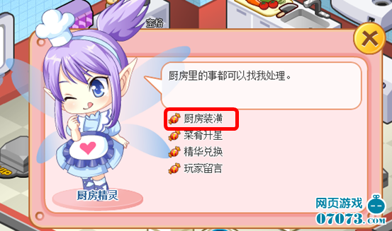 到达厨房内点击厨房精灵选择“厨房装潢” |