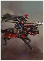 骁 果卫:由隋帝杨广于大业九年所招募的关中好汉组成的军队,他们身强力壮,骁勇而善战,特被隋帝称之为‘骁果’。骁果军的装备极为优良,甚至连骑乘的都是价 值百金的汗血马,装备着百炼精钢的骑枪和马刀,身穿血色的明光重铠甲,头戴赤金豹头盔,左臂上刺有血鹰。是大隋朝的终极武力