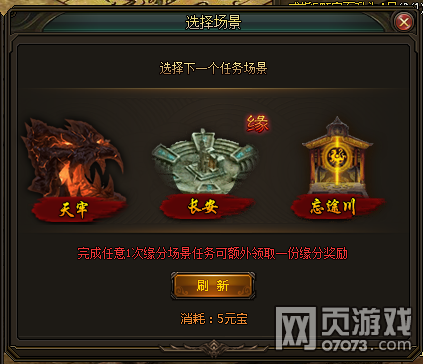 场景任务完成后任务奖励是自动领取的。在接取下一个场景任务时,有概率会出现缘分任务,如下图所示。缘分任务除了正常的经验与铜钱奖励之外还可以获得藏宝图碎片,坐骑提升道具等;遇到了千万不要错过哦!