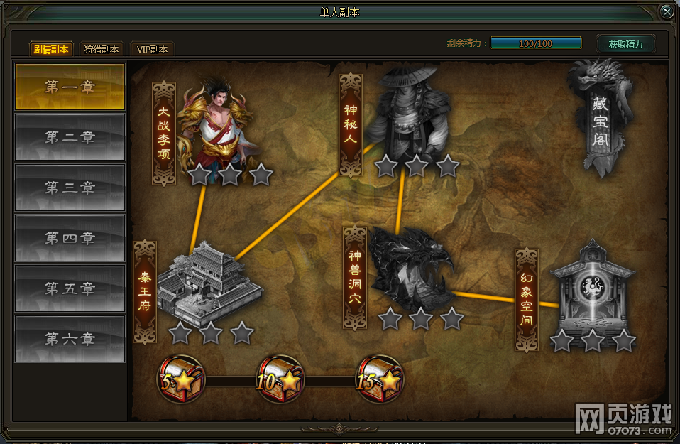 每个章节有5个普通关卡,全部3星通关后,可以激活奖励关卡-藏宝阁