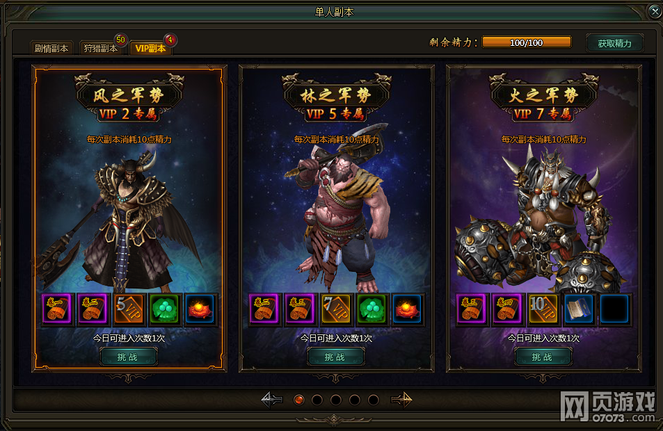 1.Vip副本根据不同的Vip等级方可进入。