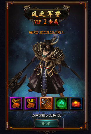 4.当前VIP副本关卡有一定几率获得下一难度的免费挑战券,持有挑战券可以无视VIP等级进行挑战。