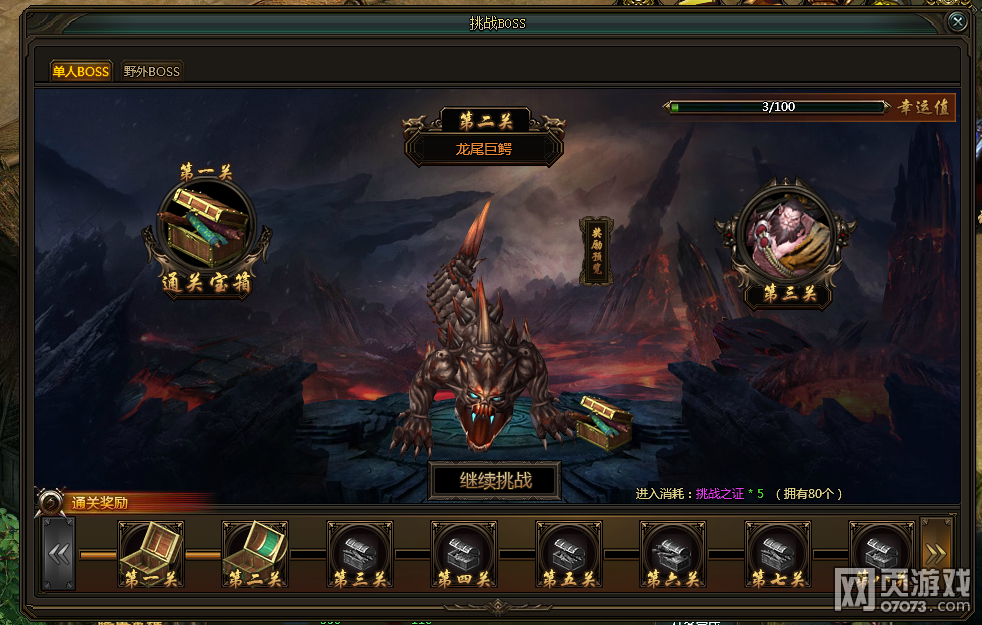 每天只能选择其中一种难度进行挑战,其中困难模式需要通关普通难度,噩梦难度需要通关困难模式并且达到VIP13。玩家每次挑战时,都需要一定数量的勇者之证,越靠后的关卡,需要的勇者之证越多。