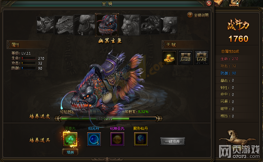 坐骑培养主要是消耗丹药来进行;培养时所增加的经验是固定的;但是升级所需要的经验是不固定的;由概率决定,也就是传说中的看脸。当然一条经验吃满了也还是会直接升级。