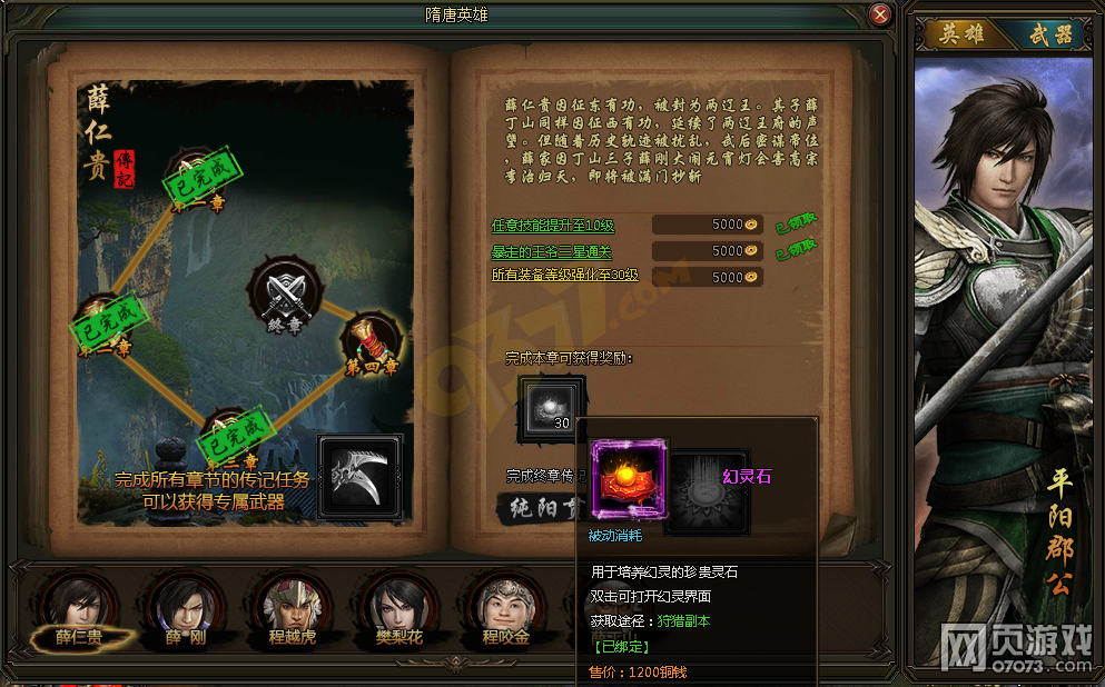 2•隋唐英雄专属任务完成后可获得大量的幻灵石。