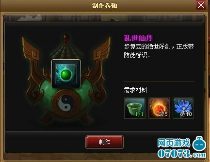 玩家通过各种途径得到制作卷轴 ,用于炼丹和制作武器。