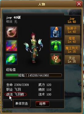 比如飞羽的战法为飞羽箭,众向攻击,效果图如下: