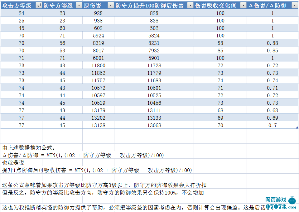 实际上伤害吸收还跟等级差有关系哦。以下的表格和分析为你辨明: