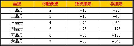 绝技丹,永久性增加绝技的丹药,服用次数越多,药效越差。