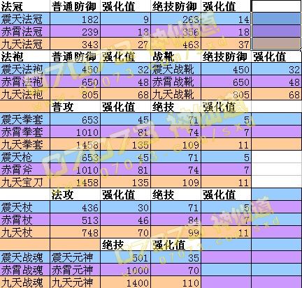 大爆料!原来神仙道80套装有三套,之前爆料的赤宵套装只是其中之一,以下是07073搜集的80级所有套装:震天套,九天套,赤宵套的全属性表以供大家参考。(强化值指每级强化成长的属性)