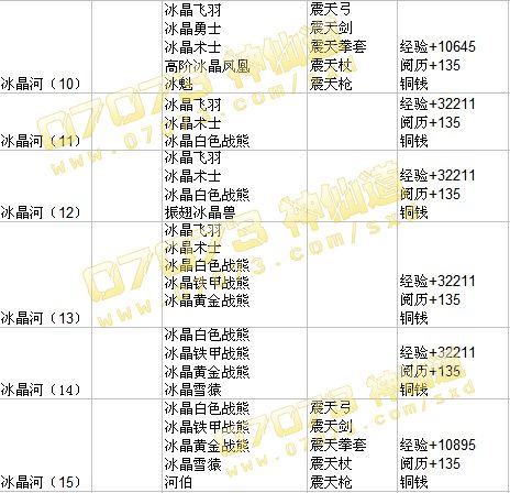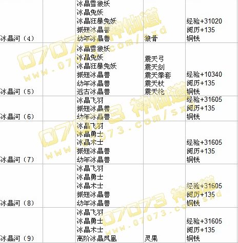 以下是07073小编整理的神仙道月牙城副本冰晶河的所有怪物与副本掉落与奖励资料供玩家参考: