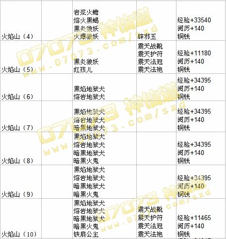 以下是07073小编整理的神仙道月牙城副本火焰山的所有怪物与副本掉落与奖励资料供玩家参考: