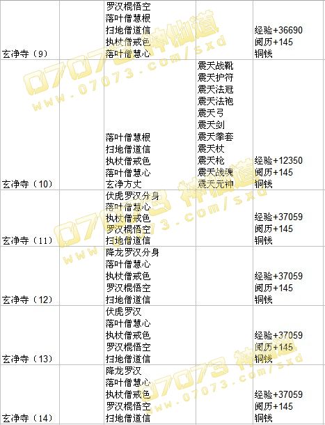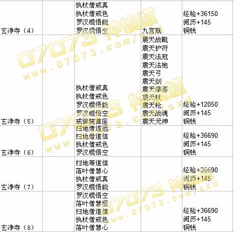 以下是07073小编整理的神仙道月牙城副本玄净寺的所有怪物与副本掉落与奖励资料供玩家参考:
