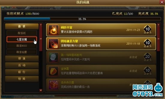10、成就系统嘛,目前不少页游都有了,娱乐性的东西,弄一个也不错。