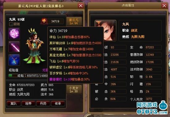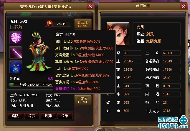 这是九凤的过95桃树的最低标准,大家可以参考一下这位玩家的三围与命格。