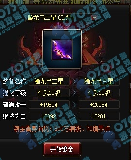 大家可以注意,一星以后,成长就固定为10%左右了,那么我们就可以看出来,一星防具是必须普及的,二星以后就看大家的财力了。大家最近就攒境界点准备砸防具吧。