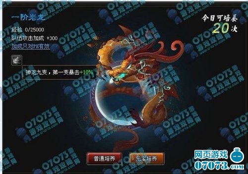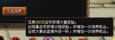 补充一下,每天培养有20次的限制,就是说元宝+铜钱培养,加一起够20次了,就不能继续养了,暴击的次数不算。