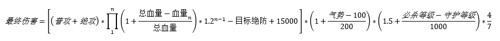 【双攻*1.2的N-1次方--对方防御+12000】*【1+(气势-100)*0.5%】*(1.5+(必杀等级-守护)/1000)*群攻系数4/7