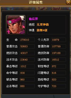 霸体:【(木吒普攻+仙姑双攻*0.25)+(木吒绝攻+仙姑双攻*0.25)*1.25-对方普防】*暴击必杀系数*甲层免伤系数