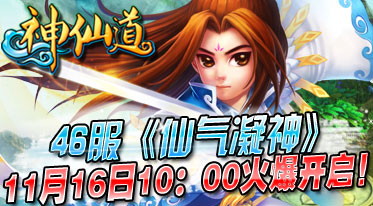 兄弟玩神仙道46服“仙气凝神”11月16日10点火爆开启!2011年最给力的仙侠版页游神仙道带你走进梦幻般的九州世界,特别是唯美古典的场景设计、劲爆的战斗画面、特色鲜明的游戏模式等都会一一呈现在每个玩家的眼前。独具特色的猎命系统,或攻或守众多命格打造不一样的战斗模式。想在九州仙侠世界里纵横江湖过一番大侠瘾,46服“仙气凝神”即将开启,精彩不容错过!