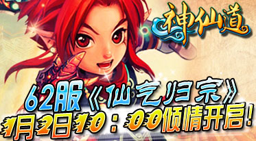 2012年到了,在欢乐祥和的元旦假期里想再度闯荡仙侠世界体验精彩游戏?神仙道62服满足你的新年愿望!众多强力伙伴和特色玩法等你来招募和畅玩,强大的世界BOSS等你来猎杀,竞技场、仙道会等PK模式给你最激烈、最精彩的战斗,敬请期待!