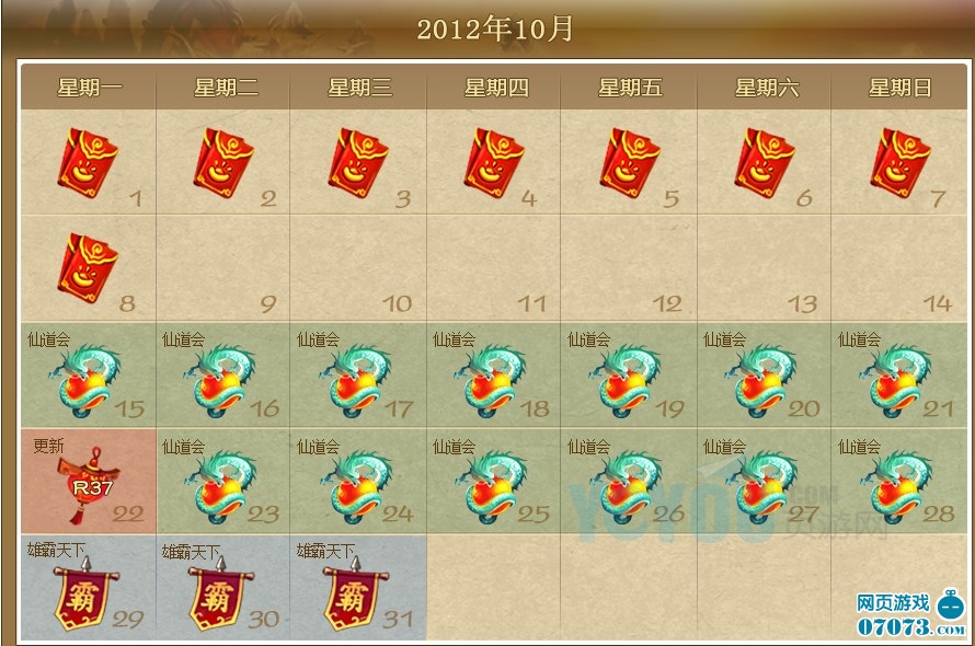 神仙道10月份活动日程安排,神仙道仙道会和雄霸天下比赛日程。