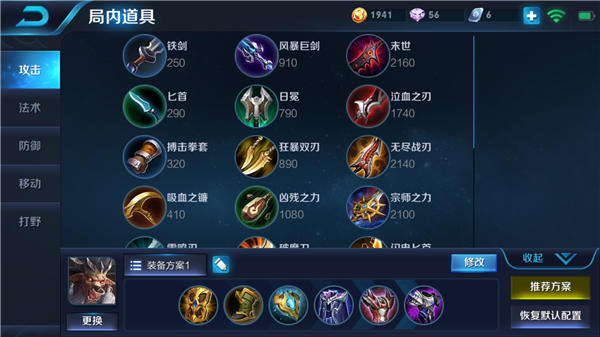 六神装:近卫荣耀、影忍之足、极寒风暴、魔女斗篷、反伤刺甲、霸者重装