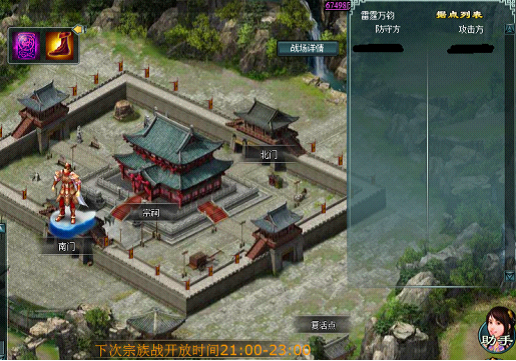 9、宗族战开始时,守方玩家的复活时间比攻方短,当有任意城门被攻破后,攻方的复活时间与守方相同。
