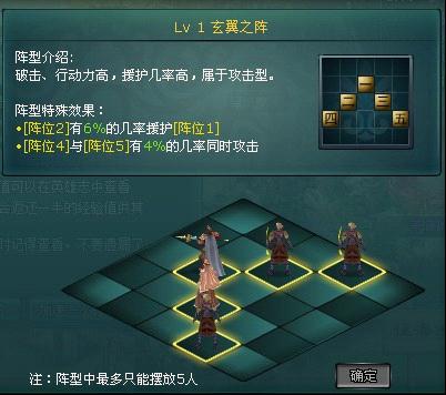 阵型:这里我介绍下玄翼之阵,破击、行动力高,攻击阵型。这个阵型最适合速杀阵。本身自带的攻击外加阵型破击和高行动力。出手快,伤害高。才能在短时间内结束战斗。有时候。最好的防御就是进攻!