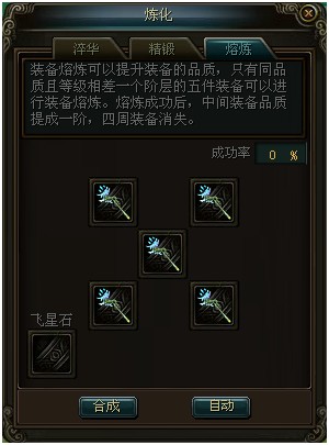 玩家可以在做任务的过程中,从野外怪物身上获得白装。通过熔炼系统可以合成为蓝装。