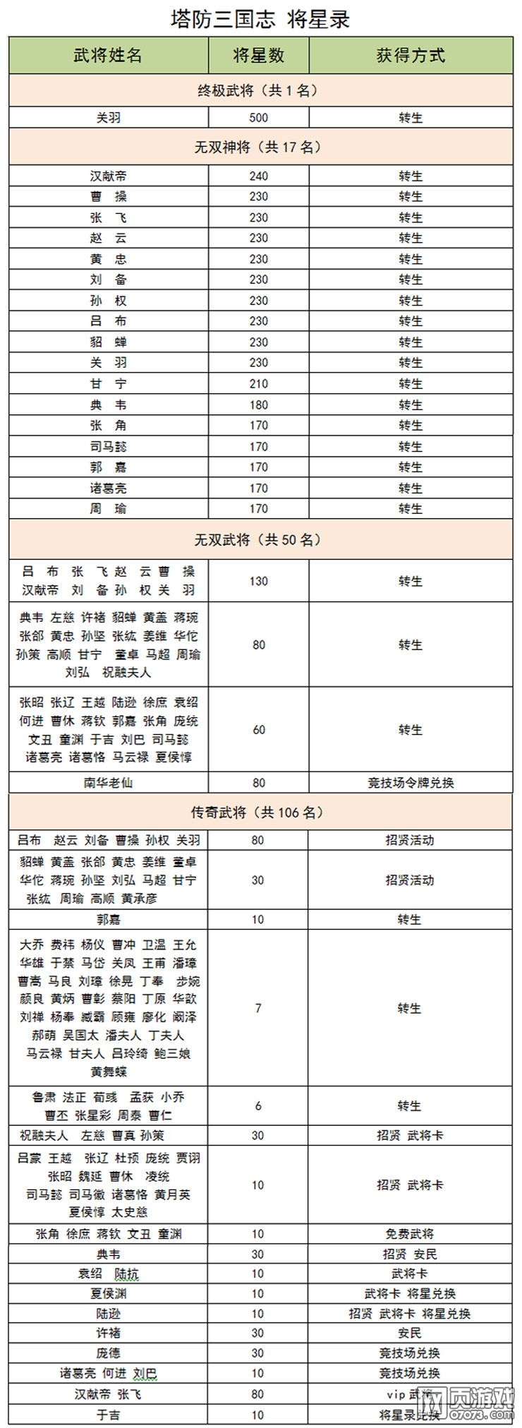 具体每个武将将星数的情况如下图所示(主公们可以点开图片放大观看)