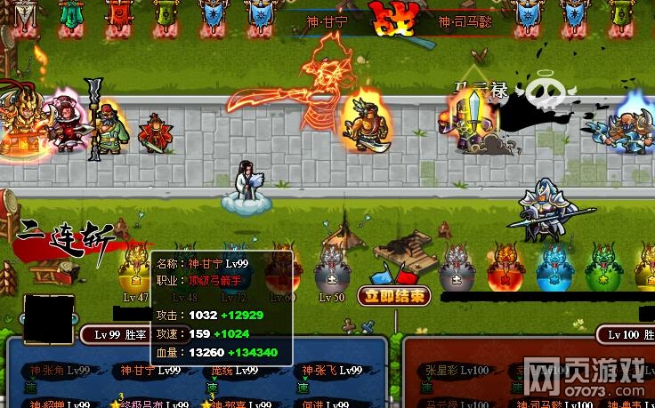 关于技能触发率:在去掉强运战旗的情况下分在竞技场实战6、群英战实战7次,神·甘宁的技能释放频率明显高于无双战心将和神·郭嘉,在正常PK环境中,技能连发效果明显,一次连发可达4-8次。