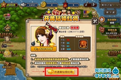 塔防三国志孙尚香你领取了吗,麻花和你分享塔防三国志黄钻礼包孙尚香领取攻略。