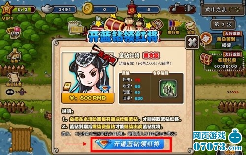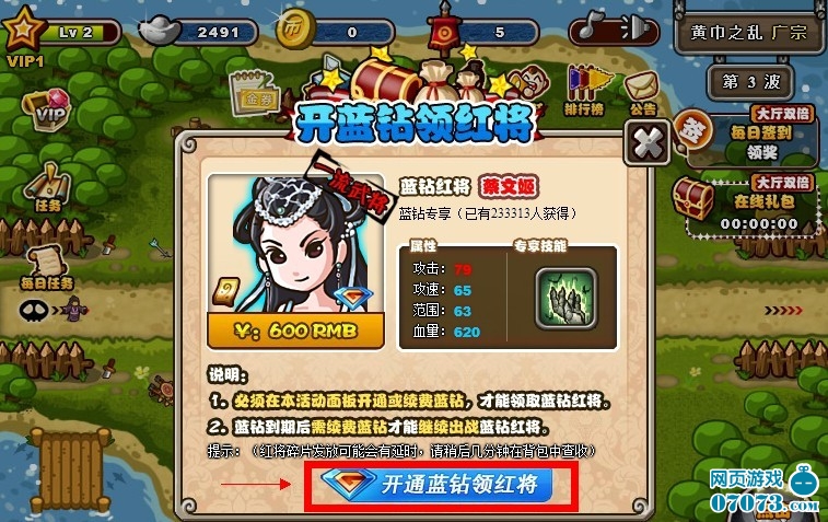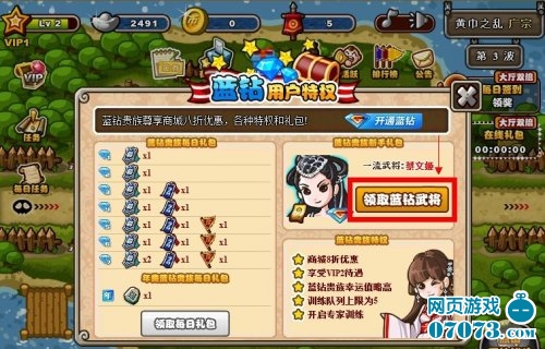 塔防三国志蓝钻礼包你领取了,麻花教你领取塔防三国志蓝钻礼包,快来领取塔防三国志蓝钻武将蔡文姬。