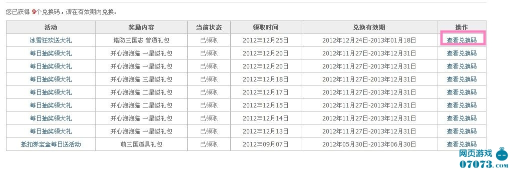 4、礼包兑换期限: 2012年12月24日-2013年1月18日(26天)