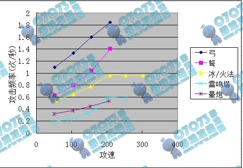 可以发现。攻速达到200后,攻击频率就已经固定了!!!!!上游坑爹呀!!!