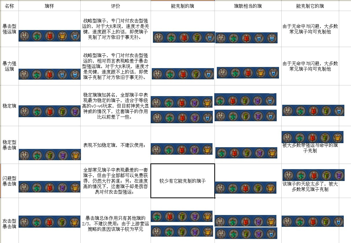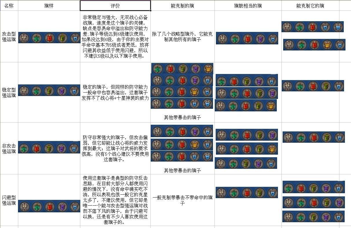 六、触发旗,也就是强运:配合旗,在目前十星神装大显神威的情况下,强运旗的作用越来越明显,高于6级建议使用此旗,些旗与战心将配合是绝配。