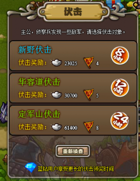 新伏击总的来说比以前好 我的24小时是红色的最高品质 一看吓尿了 是红色的 15万钱 14个军令 以前一天也就10个 所以我支持这个新伏击系统