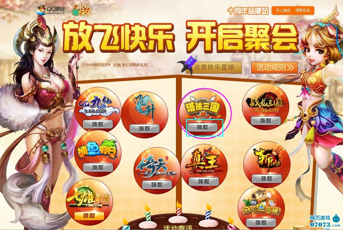 2.在本页任意领取礼包成功的玩家,您同时也点亮一颗十周年活动“快乐星球“,助您参加十周年抽奖活动,100%中奖。进入十周年页面参与抽奖>>