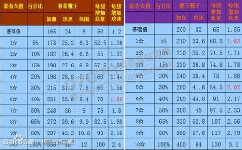 从上图数据可以看出:魔王鞋子1星超越十星神蓝,5星超越十星神红鞋子,速度增长比例远非神品黄装可以娉美,这是魔王套装里面最吸引人的部件了。