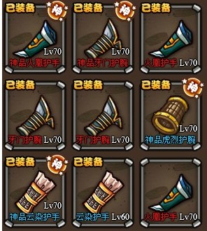 2、所有塔的攻速保证200以上,通过交换神护腕和神鞋子可以达到,其实主要是区星、曹毛和区星等绿将,其他将到了70级穿上普通装备都能上200了。