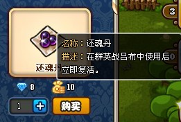 玩家可以在商城购买到还魂丹,每个价值1QB,为了争夺名词的玩家可以选择哦!