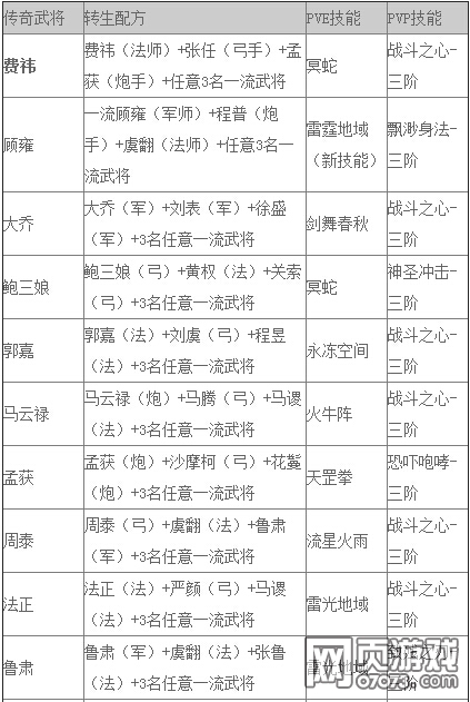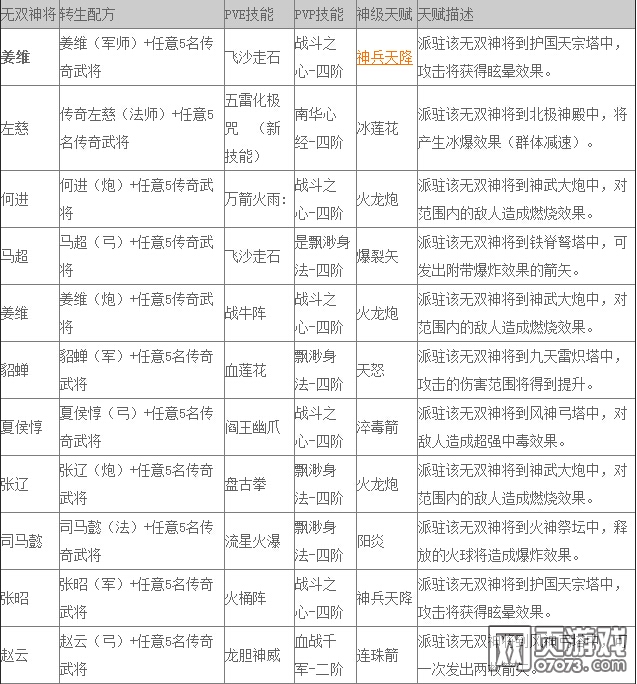 无双神将转生配方PVE技能PVP技能神级天赋天赋描述