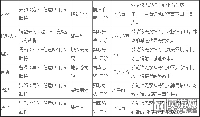 姜维姜维(军师)+任意5名传奇武将飞沙走石战斗之心-四阶神兵天降派驻该无双神将到护国天宗塔中,攻击将获得眩晕效果。