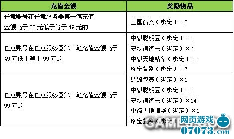 专为广大玩家准备的首充福利活动。首次充值单笔金额达到不同数量的用户都会获得官方额外赠送的游戏道具。直接进入游戏即可领取哦