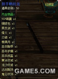 新服开启后您可以在游戏内商城中购买到性价比极高的“新手畅玩包”。里面包含了价值2000元宝的VIP锦囊及绸缎包,此外还有大量橙色新手装备额外附赠哦!