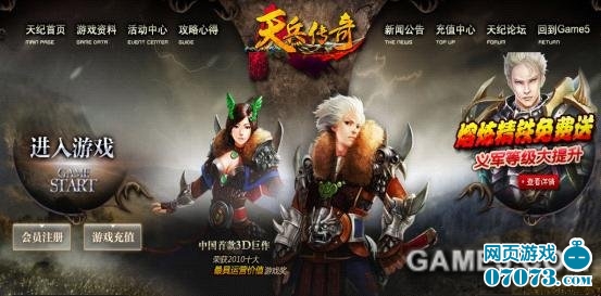 天纪是由趣游旗下的跟我玩(Game5)平台独家代理的中国首款真·3D网页游戏作品。该游戏最新的资料片《天兵传奇》踏入国际展会e-fun,一方面为趣游的产品打开国际市场奠定了基础,另外一方面也为国内的诸多页游产品做了个榜样,真可谓天兵降临,实至名归!