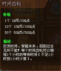 描述:改变时间,穿越未来,回到过去,无所不能!每个时间齿轮可以缩短1个小时的等待时间(不足1小时按1小时计算)。